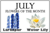 July Birth Flowers or Flowers of the Month, are the flowers that traditionally symbolize the month of someone’s birth. For July, the most commonly recognized Birth Flower is the Larkspur. Another Birth Flower for June is the Water Lily.